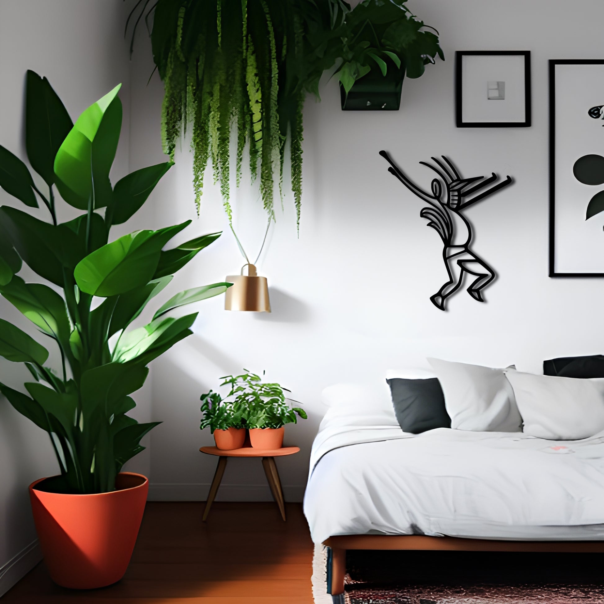 Add a touch of tribal culture to your living space with this beautiful Kokopelli dancing metal wall art. The intricate line art design captures the essence of the tribal dance and is sure to be a focal point in any room. The wall decor is made of high-quality metal and is available in custom color options to match any interior design style.